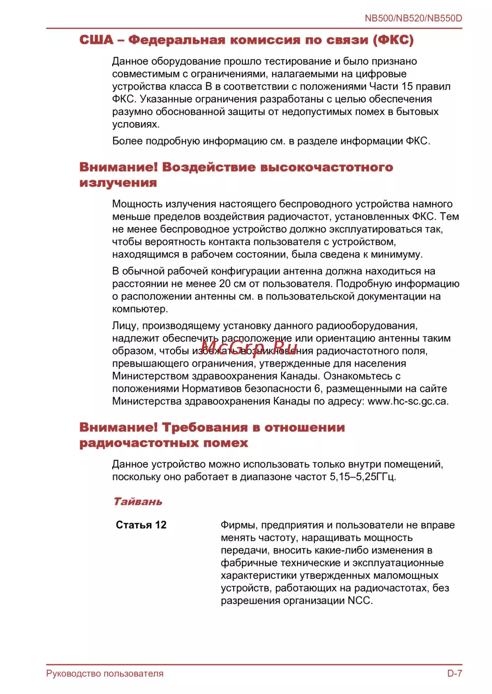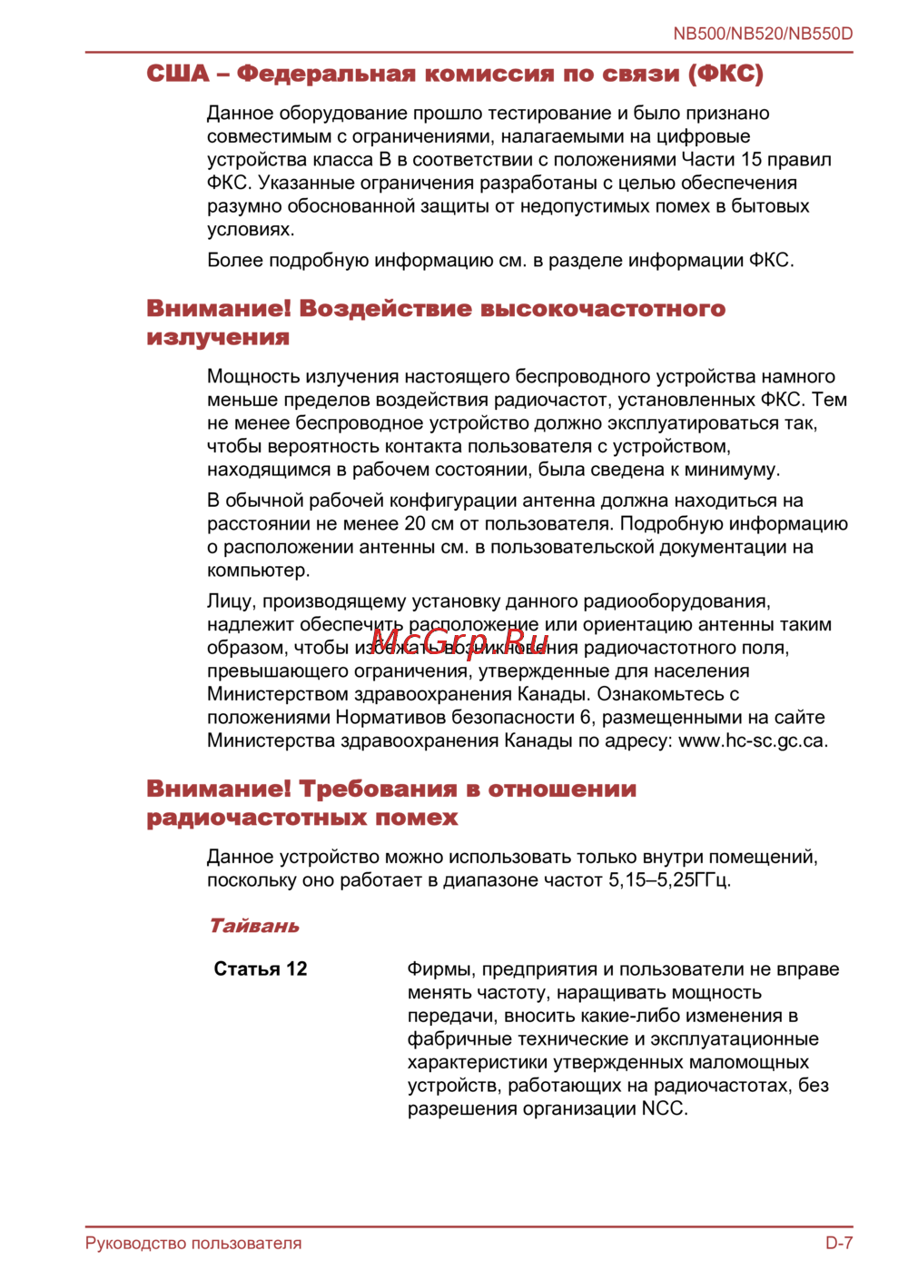 Toshiba Mini NB550D-10K PLL5FE-01C01GRU — информация о радиочастотных устройствах и их использовании [146/163]