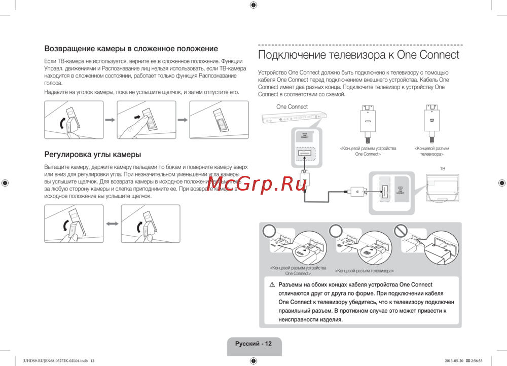 Если ТВ-камера не используется, верните ее в сложенное положение. Функции