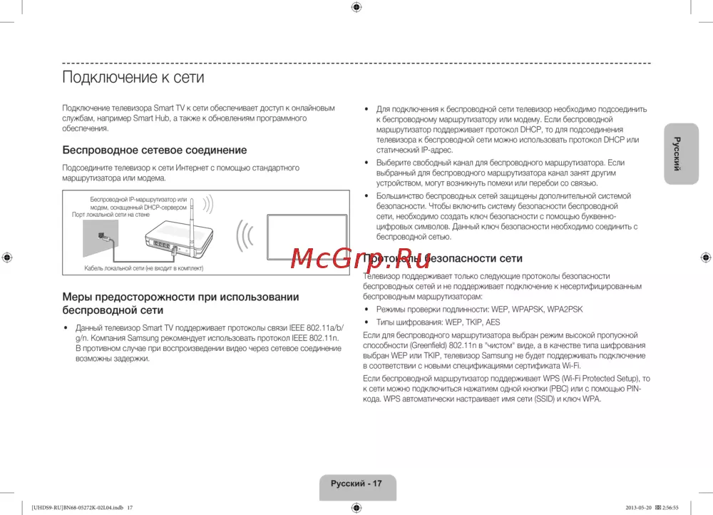 g/n. Компания Samsung рекомендует использовать протокол IEEE 802.11n.