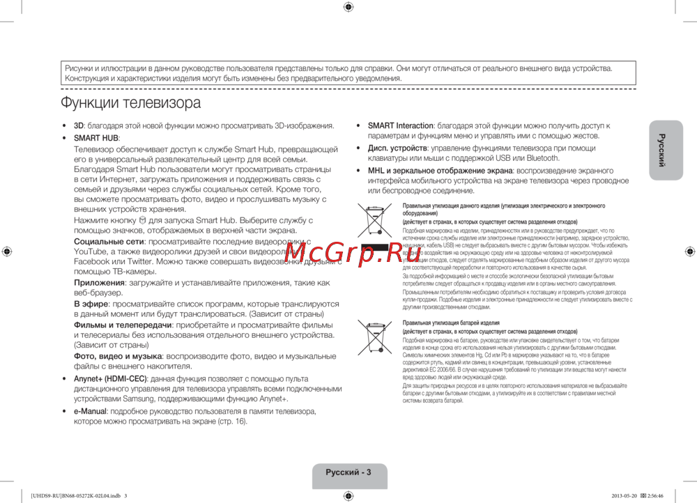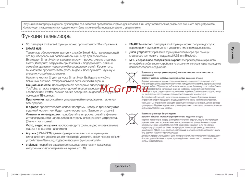 - Телевизор обеспечивает доступ к службе smart hub превращающей его в универсальный развлекательный центр для всей семьи благодаря smart hub пользователи могут просматривать страницы в сети интернет загружать приложения и поддерживать связь с семьей и друзьями через службы социальных сетей кроме того вы сможете просматривать фото видео и прослушивать музыку с внешних устройств хранения нажмите кнопку для запуска smart hub выберите службу с помощью значков отображаемых в верхней части экрана социальные сети просматривайте последние видеоролики с youtube а также видеоролики друзей и свои видеоролики в facebook или twitter можно также совершать видеозвонки друзьям с помощью тв камеры приложения загружайте и устанавливайте приложения такие как веб браузер в эфире просматривайте список программ которые транслируются в данный момент или будут транслироваться зависит от страны фильмы и телепередачи приобретайте и просматривайте фильмы и телесериалы без использования отдельного внешнего устройст p.3