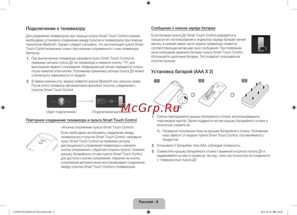 - Повторное соединение телевизора и пульта smart touch control p.6