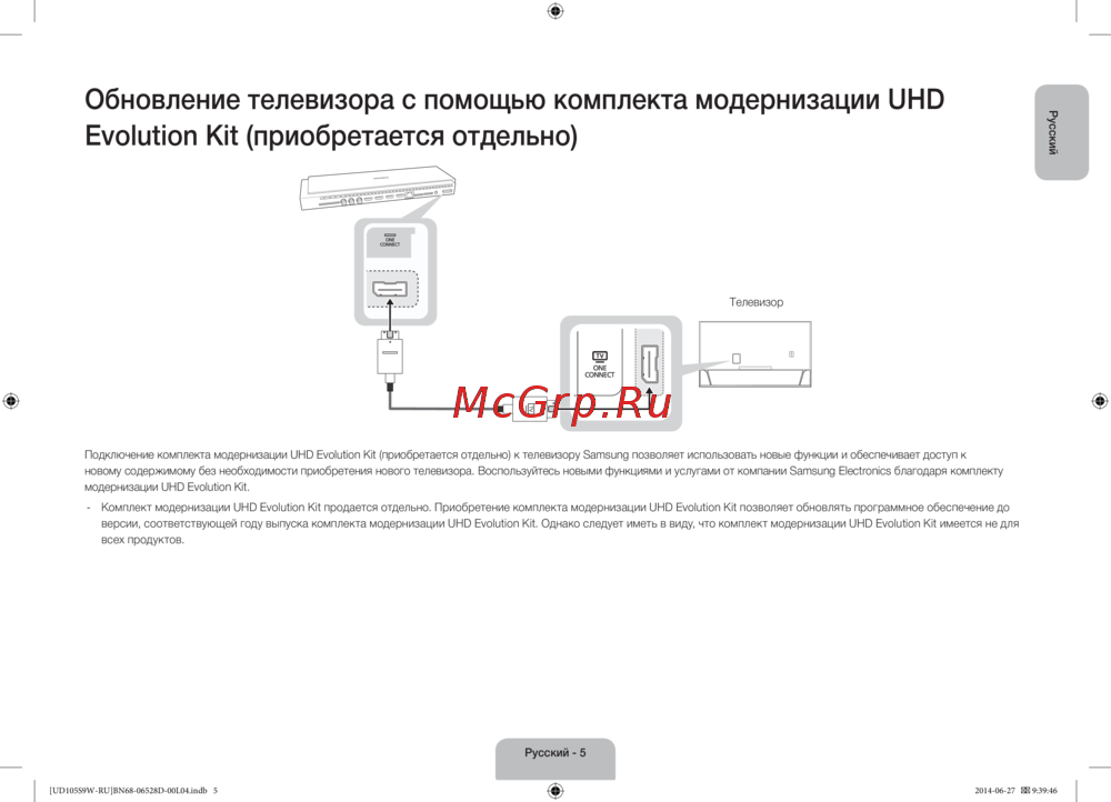 - Обновление телевизора с помощью комплекта модернизации uhd evolution kit приобретается отдельно p.5