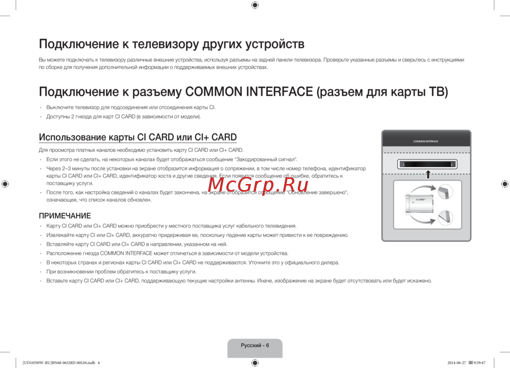 Samsung Series 9 UE105S9WAT [6/26] Использование карты ci card или ci card