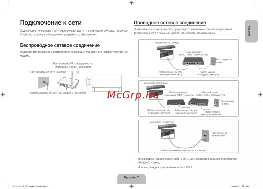 - Телевизор не поддерживает работу сети если скорость соединения составляет 10 мбит с и ниже p.7