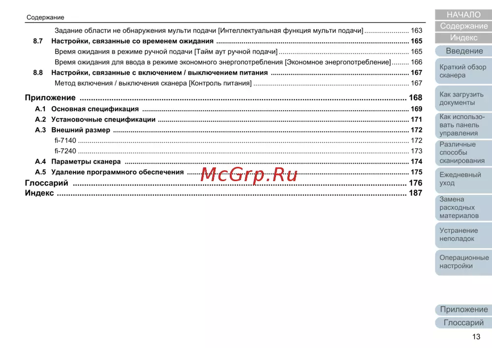 A.4 Параметры сканера .................................................................................................................................................. 174