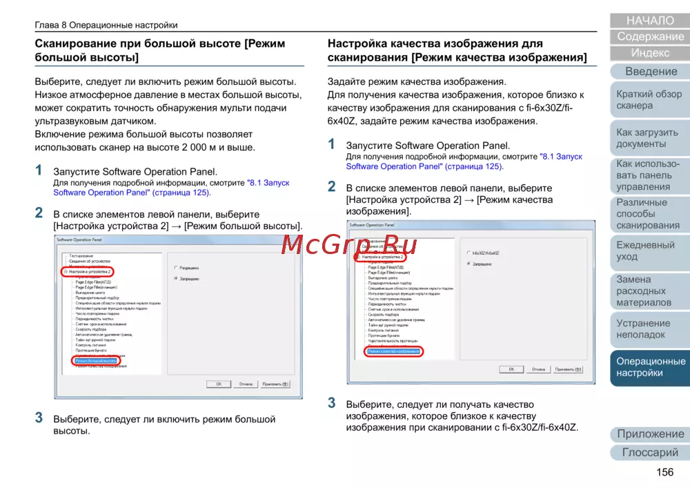 Узнайте, как настроить режим большой высоты и качество изображения для сканирования. Подробные инструкции по использованию панели управления и оптимизации работы устройства.
