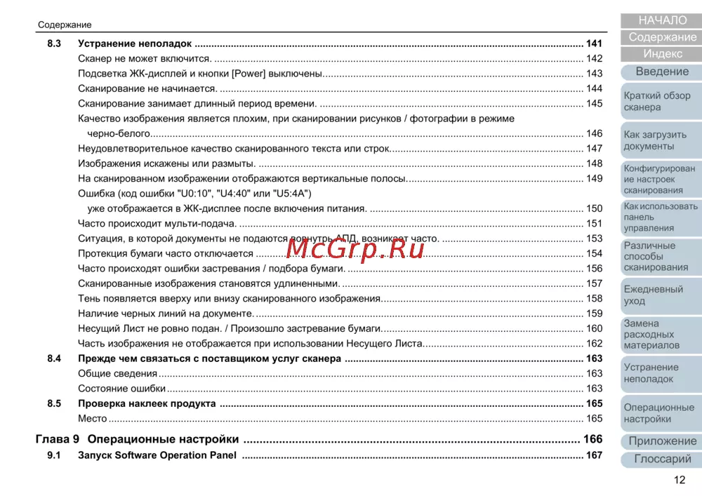 8.4 Прежде чем связаться с поставщиком услуг сканера ...................................................................................... 163