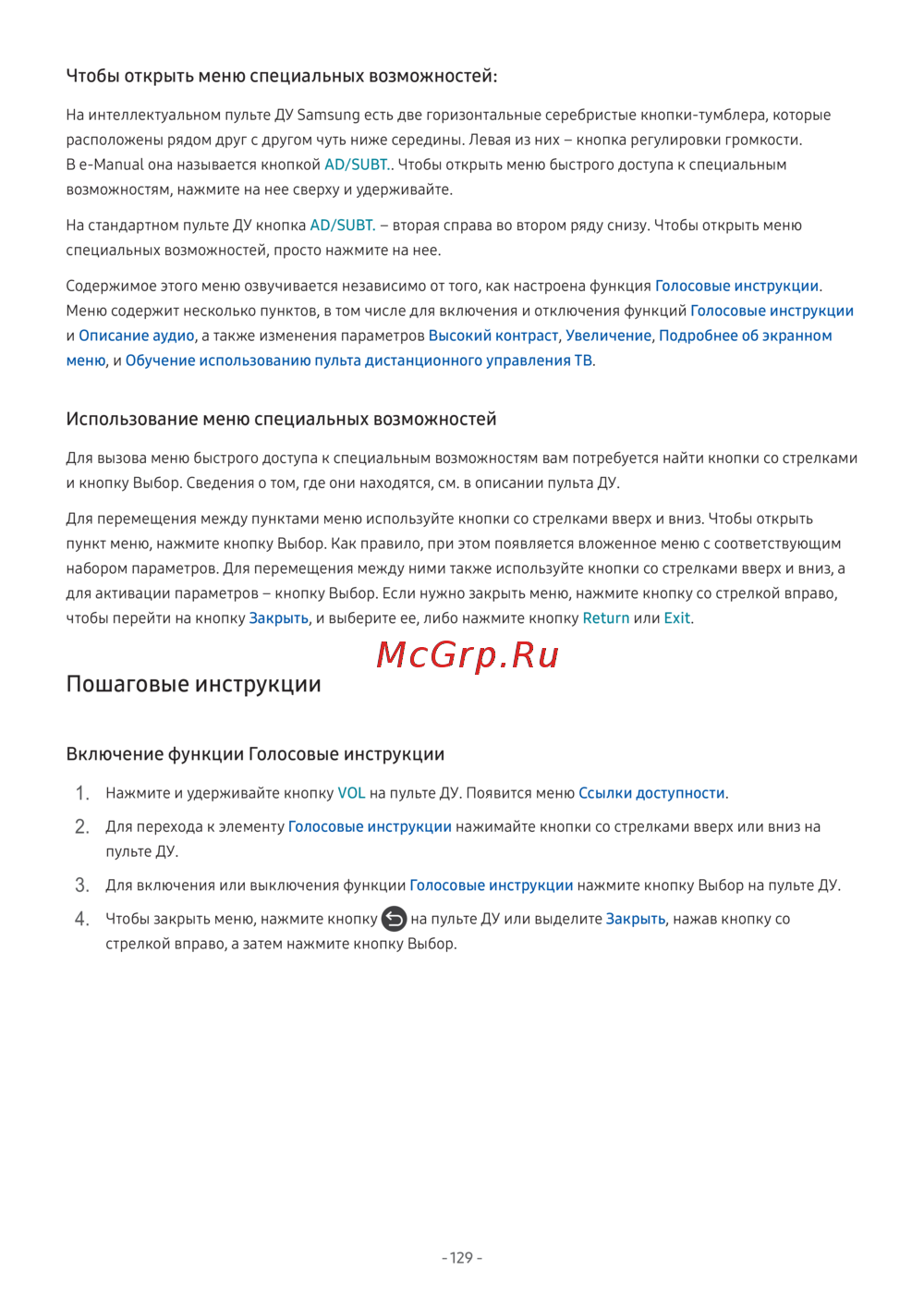 - Инструкции по использованию специальных возможностей p.132