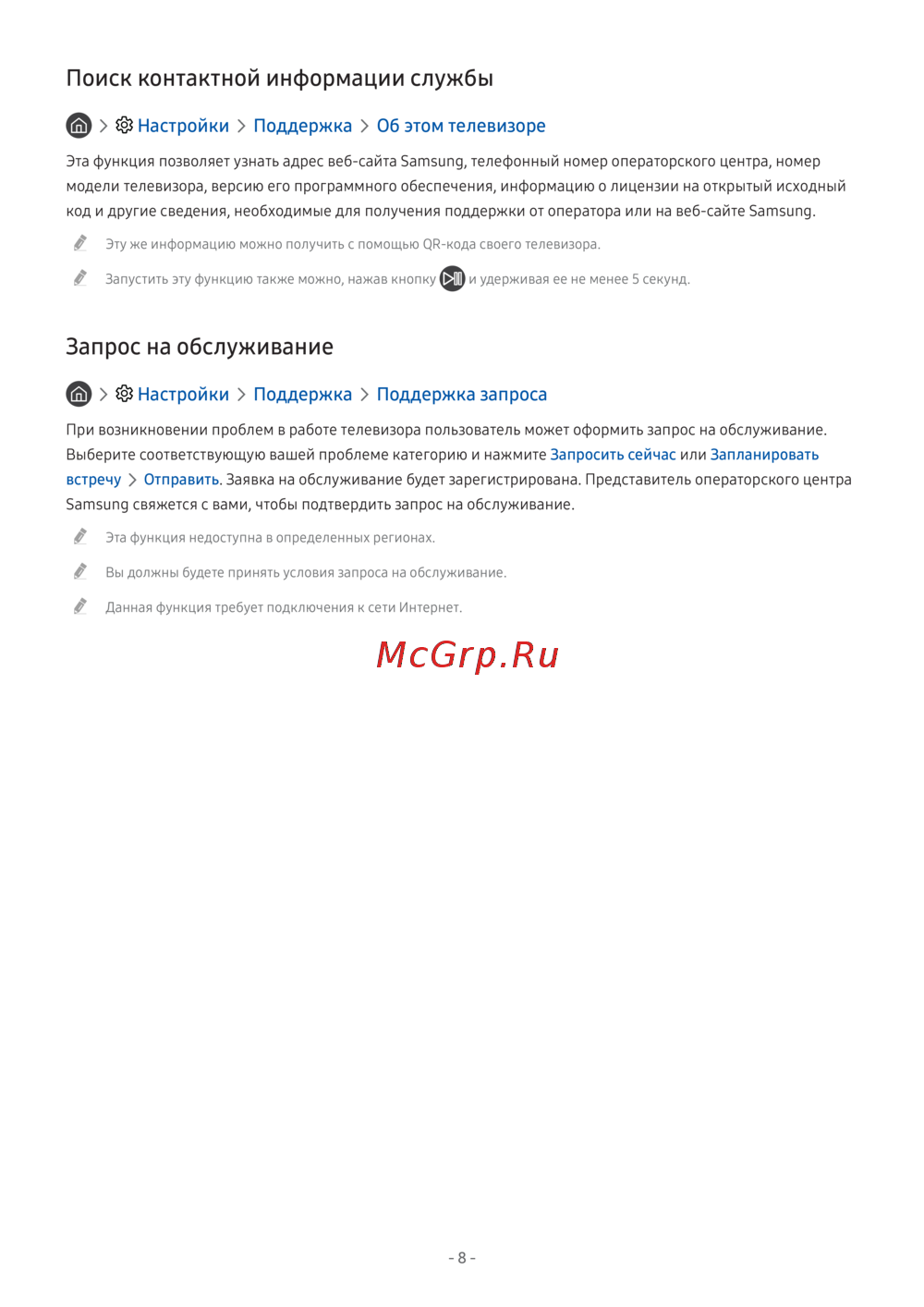 Эта функция позволяет узнать адрес веб-сайта Samsung, телефонный номер операторского центра, номер
