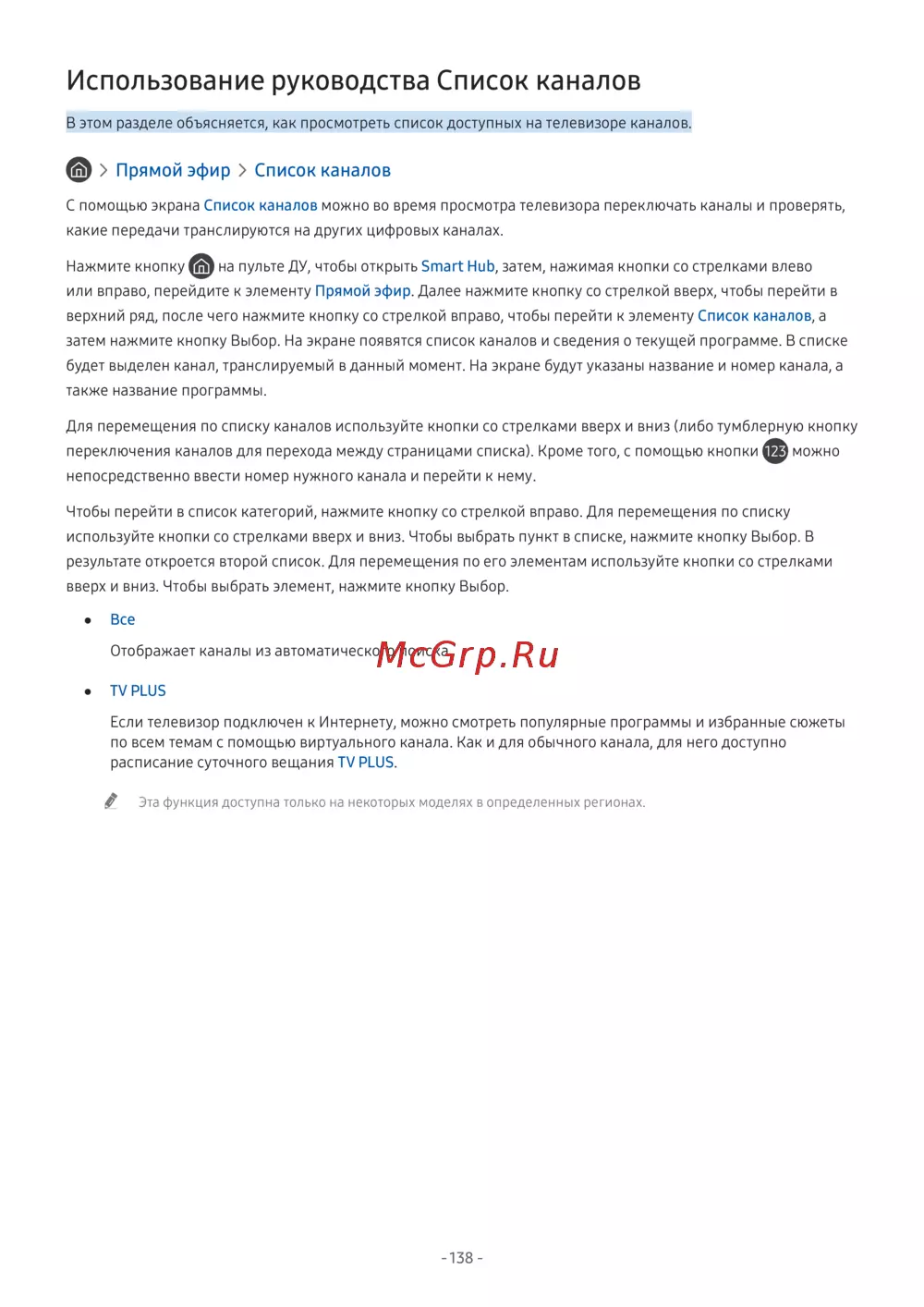 переключения каналов для перехода между страницами списка). Кроме того, с помощью кнопки можно