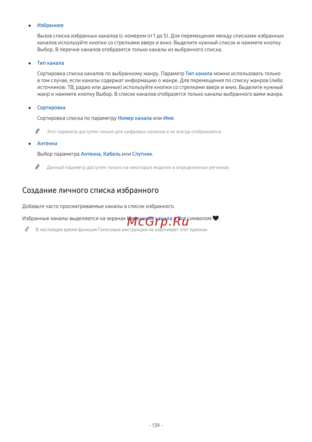 - Выбор и просмотр только тех каналов которые внесены в списки избранного p.147