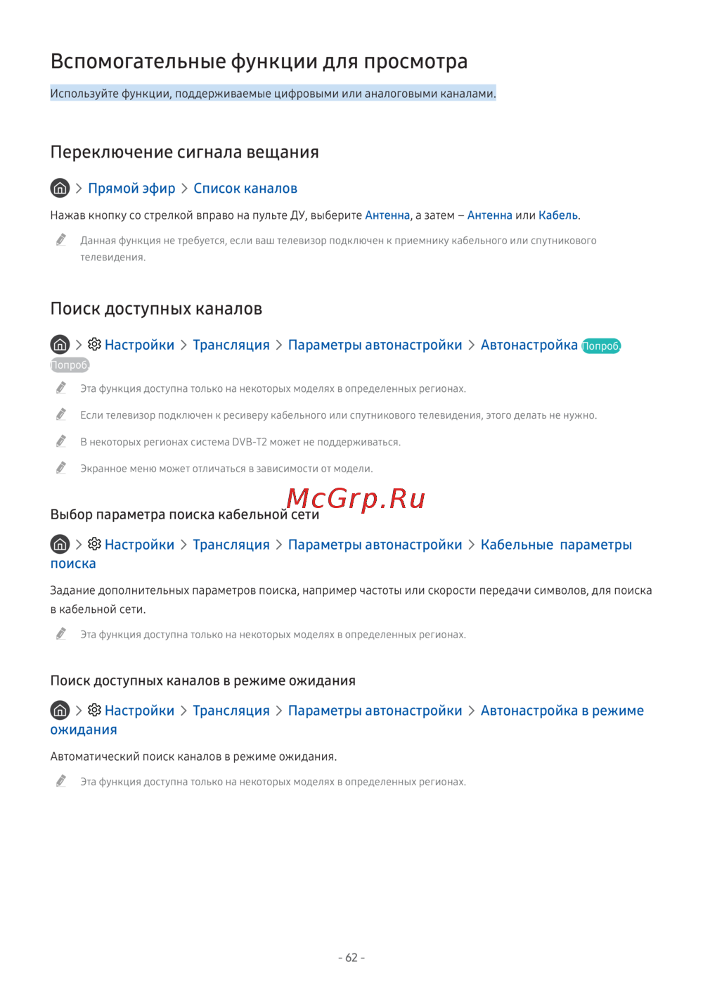 " Данная функция не требуется, если ваш телевизор подключен к приемнику кабельного или спутникового