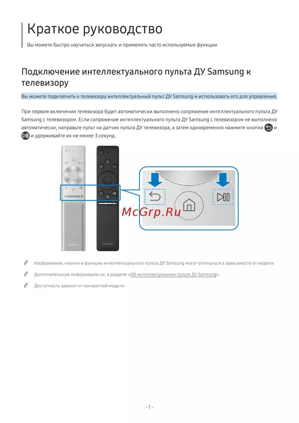 " Дополнительную информацию см. в разделе «Об интеллектуальном пульте ДУ Samsung».