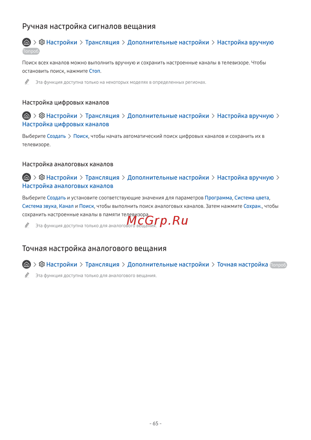 Samsung Series 6 UE65MU6670U — ручная настройка телевизионных сигналов и каналов [71/155]