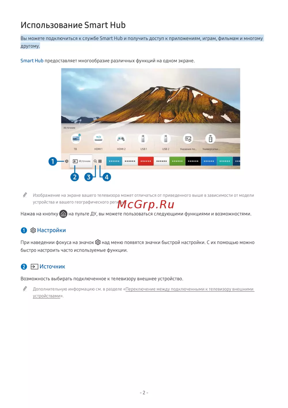 - Использование smart hub p.151