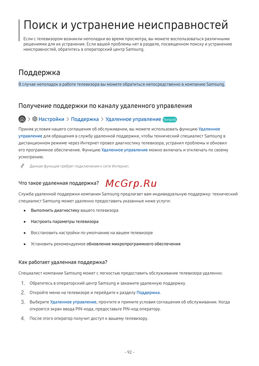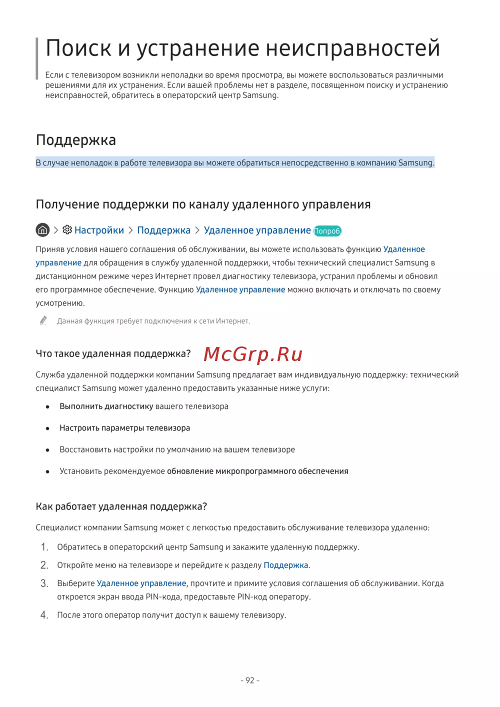 управление для обращения в службу удаленной поддержки, чтобы технический специалист Samsung в