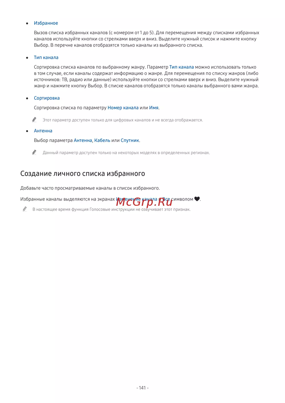 - Выбор и просмотр только тех каналов которые внесены в списки избранного p.149