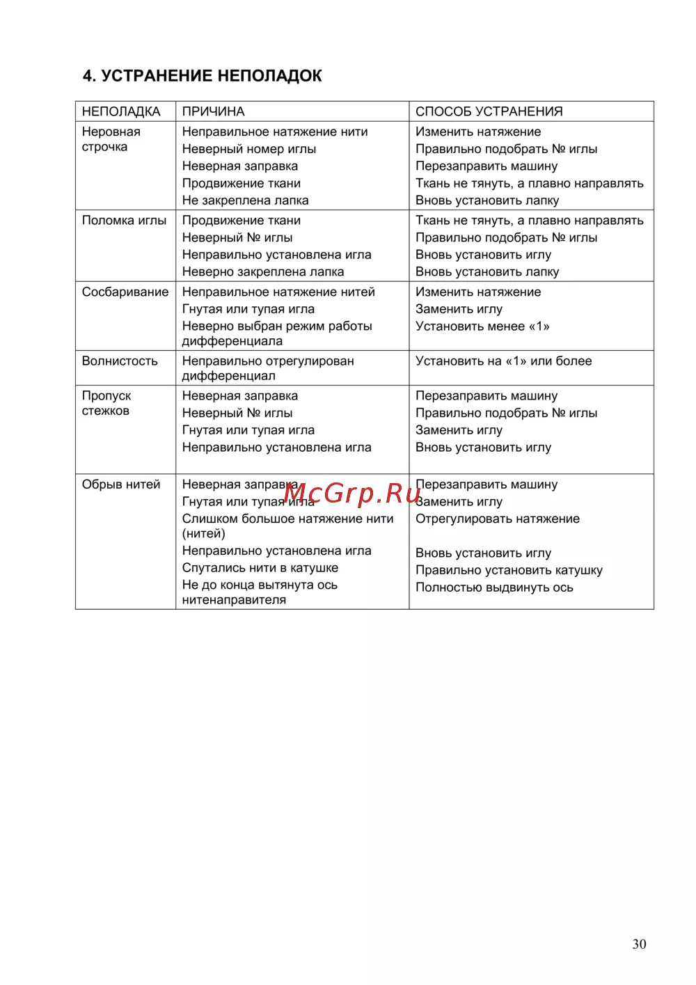 Aurora 774D — устранение неполадок швейных машин: советы и рекомендации [30/35]