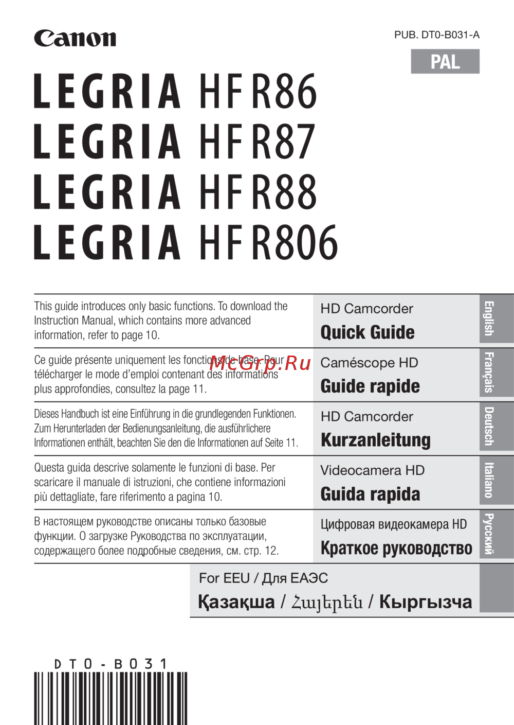 Canon LEGRIA HF R806Краткое руководство