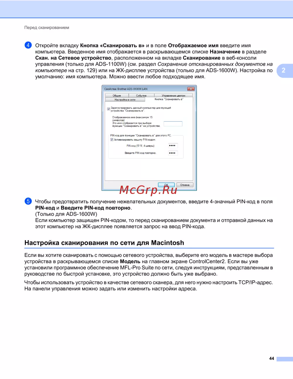 Brother ADS1600WR1 Белый [58/252] Настройка сканирования по сети для macintosh