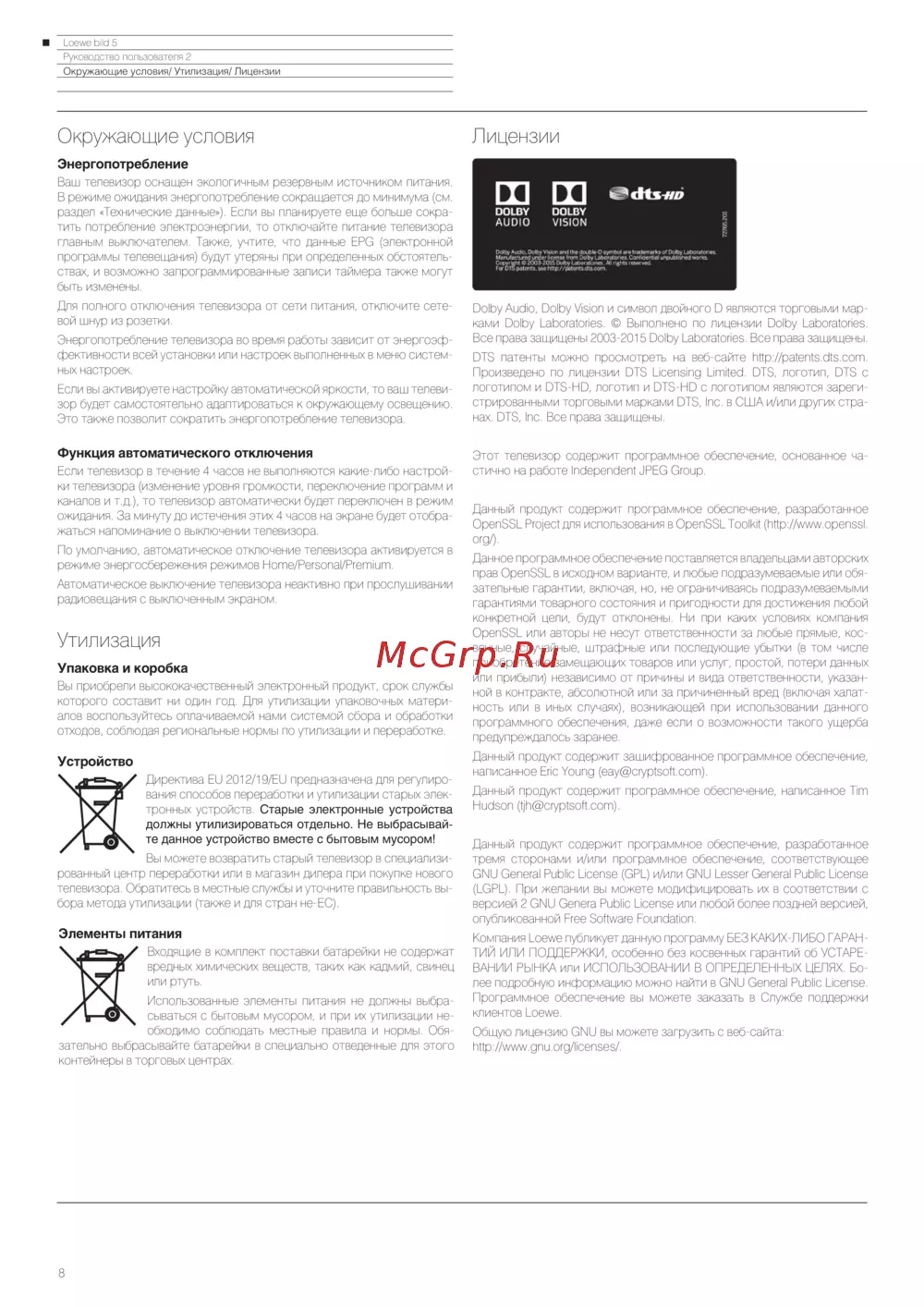 Loewe 57441W90 Bild 4.55 — руководство пользователя: Энергопотребление и утилизация телевизора [8/10]
