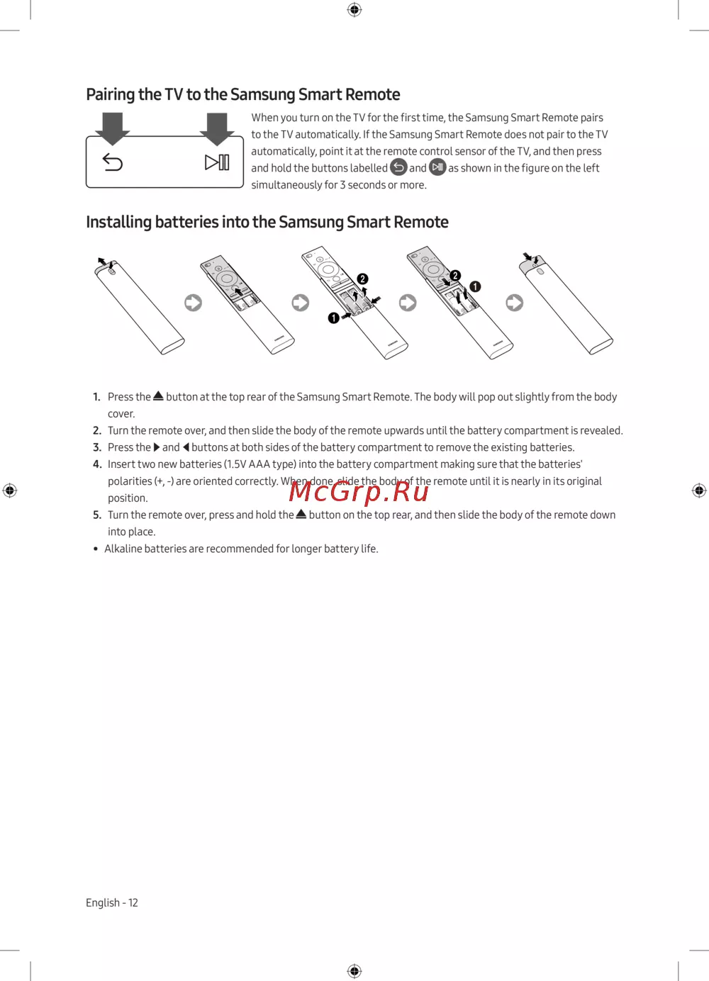 - Установка батарей в интеллектуальный пульт ду samsung p.12