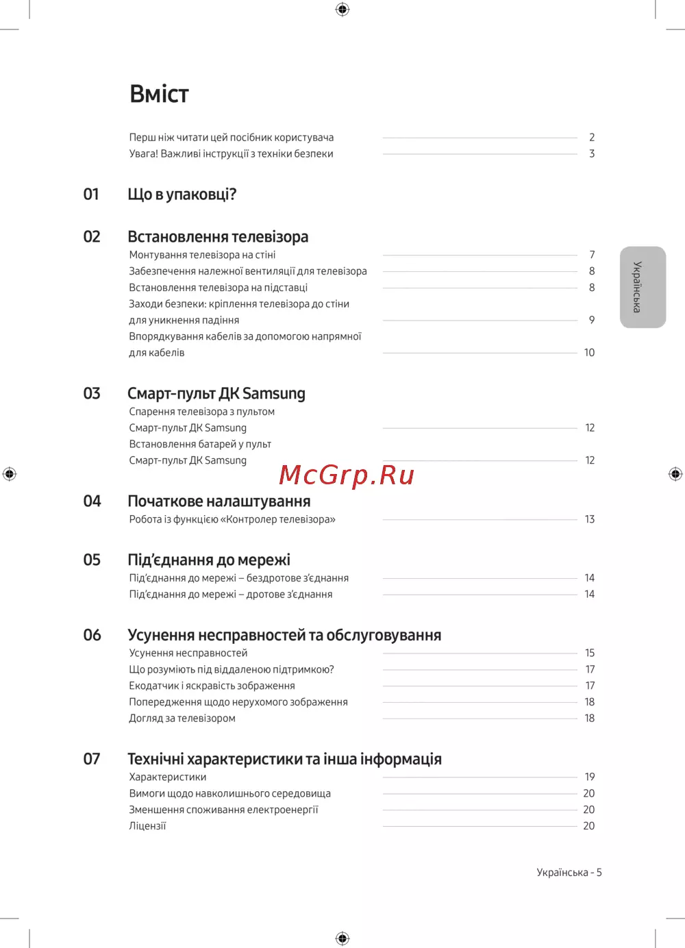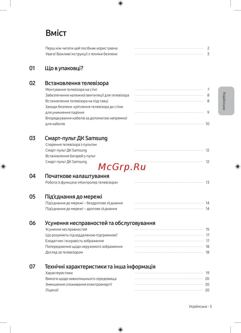 - Обеспечение достаточной вентиляции для телевизора p.8