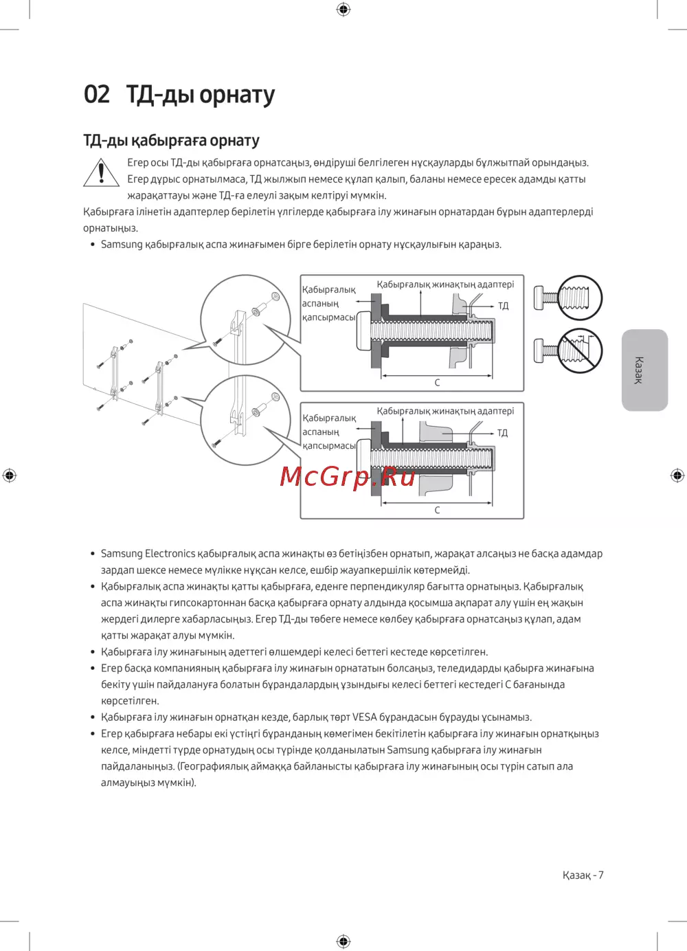 - Тұрғыға орнату қабырғалық аспа жинаққа орнату p.74