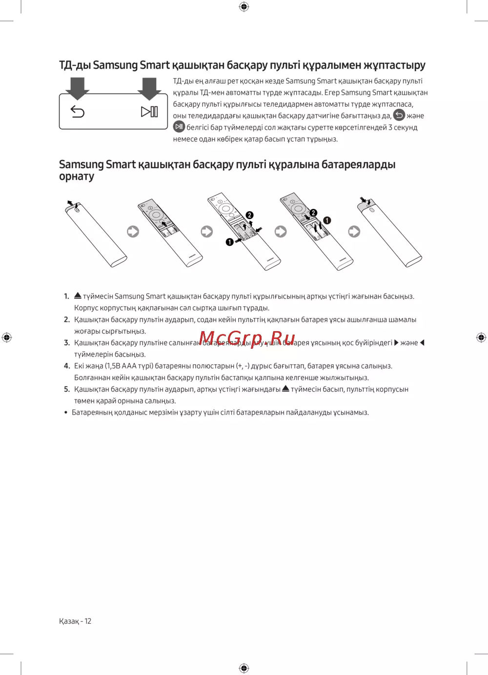 - Samsung smart қашықтан басқару пульті құралына батареяларды орнату p.78