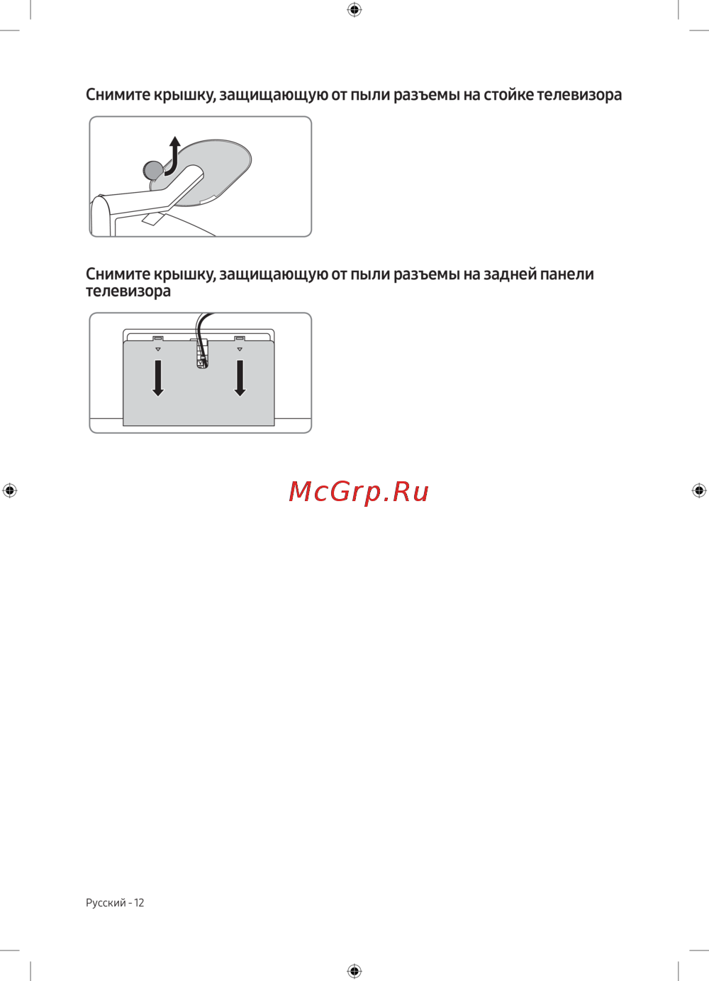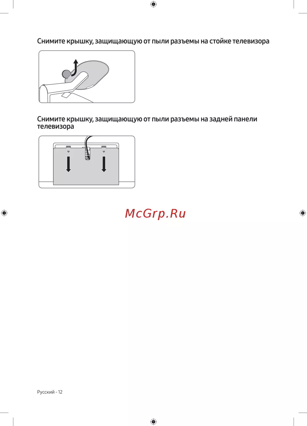 - Снимите крышку защищающую от пыли разъемы на задней панели телевизора p.12