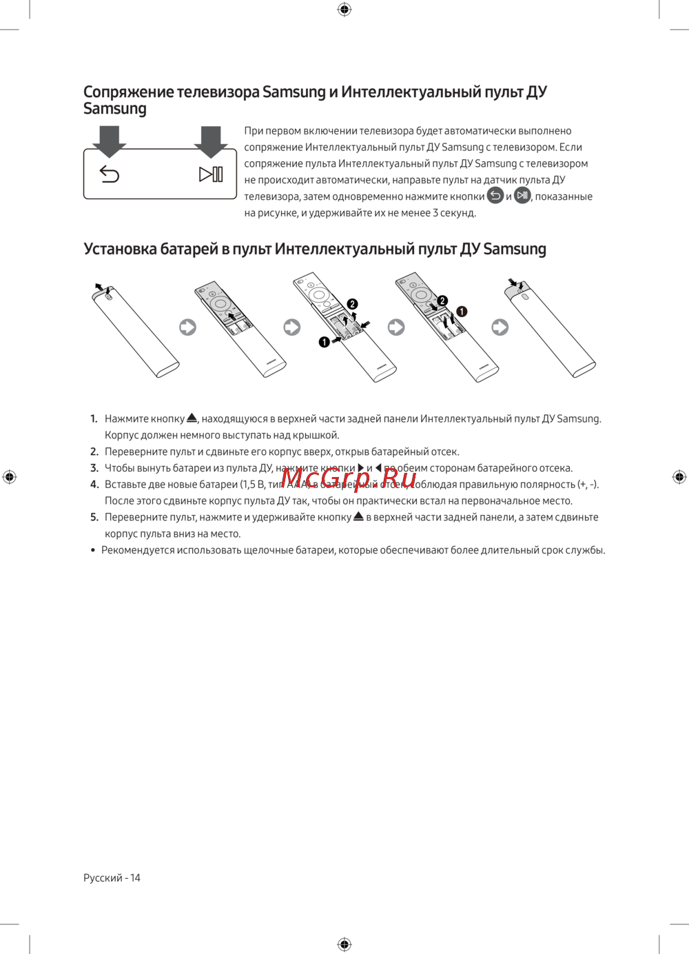 - Установка батарей в пульт интеллектуальный пульт ду samsung p.14