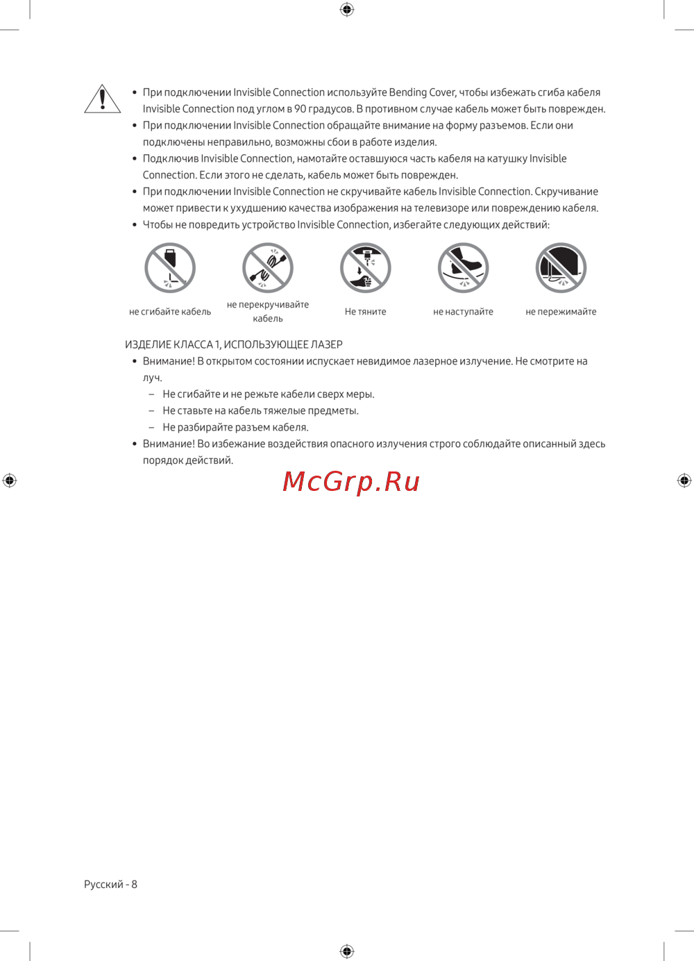 • При подключении Invisible Connection используйте Bending Cover, чтобы избежать сгиба кабеля