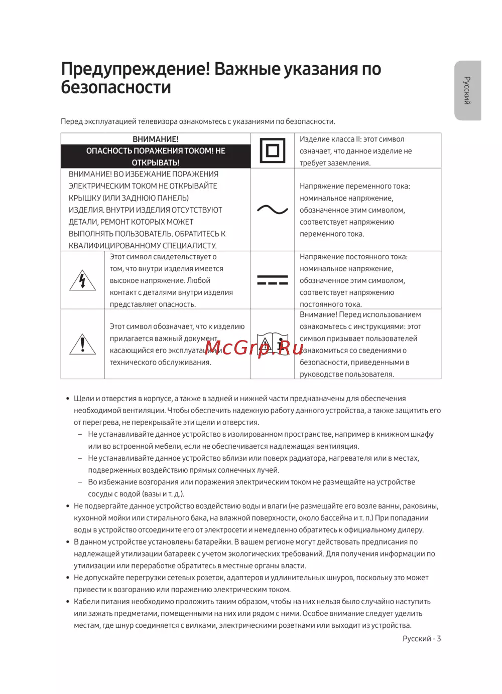 - Обеспечение достаточной вентиляции для телевизора p.10