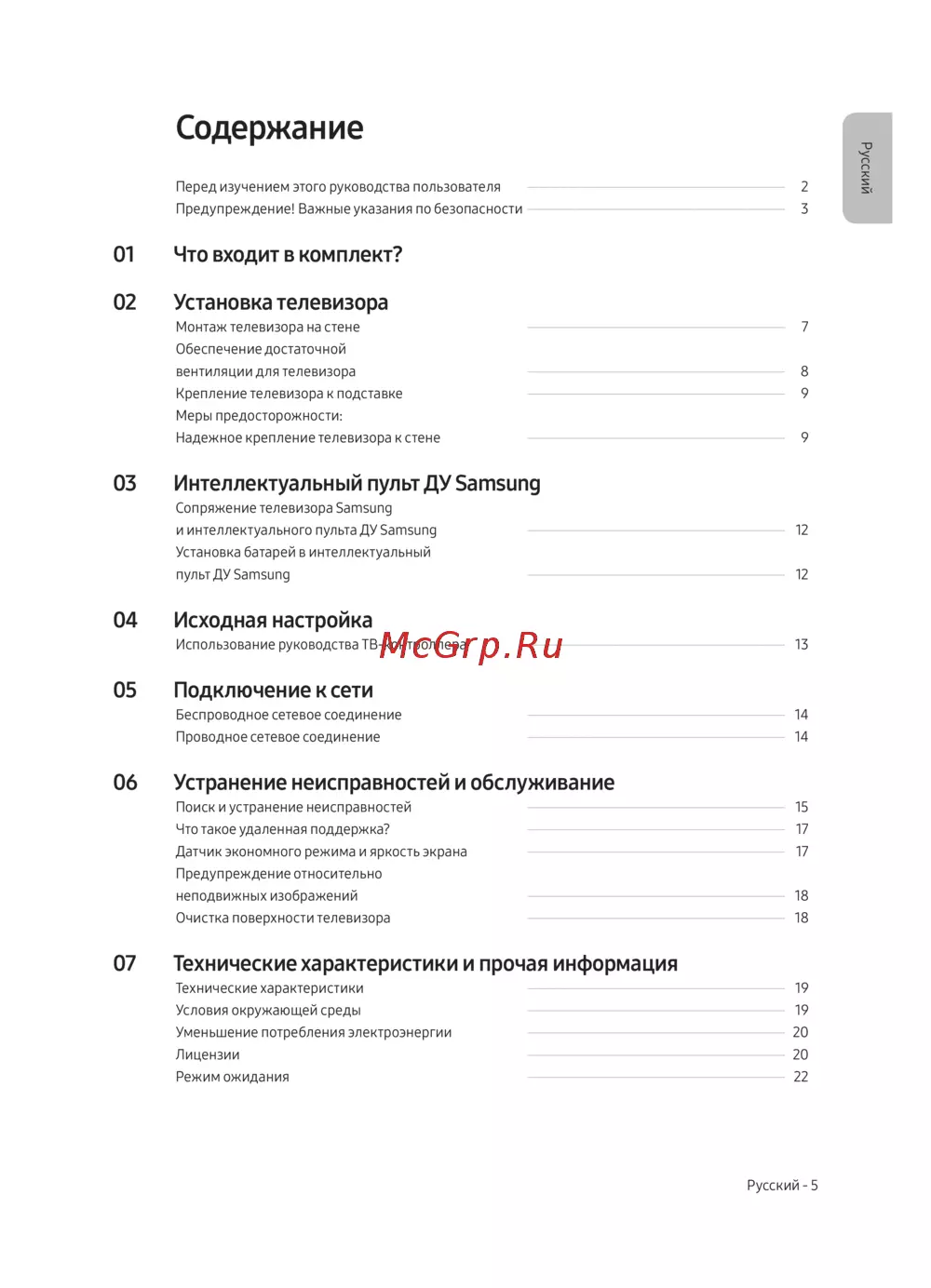 - Очистка поверхности телевизора p.20