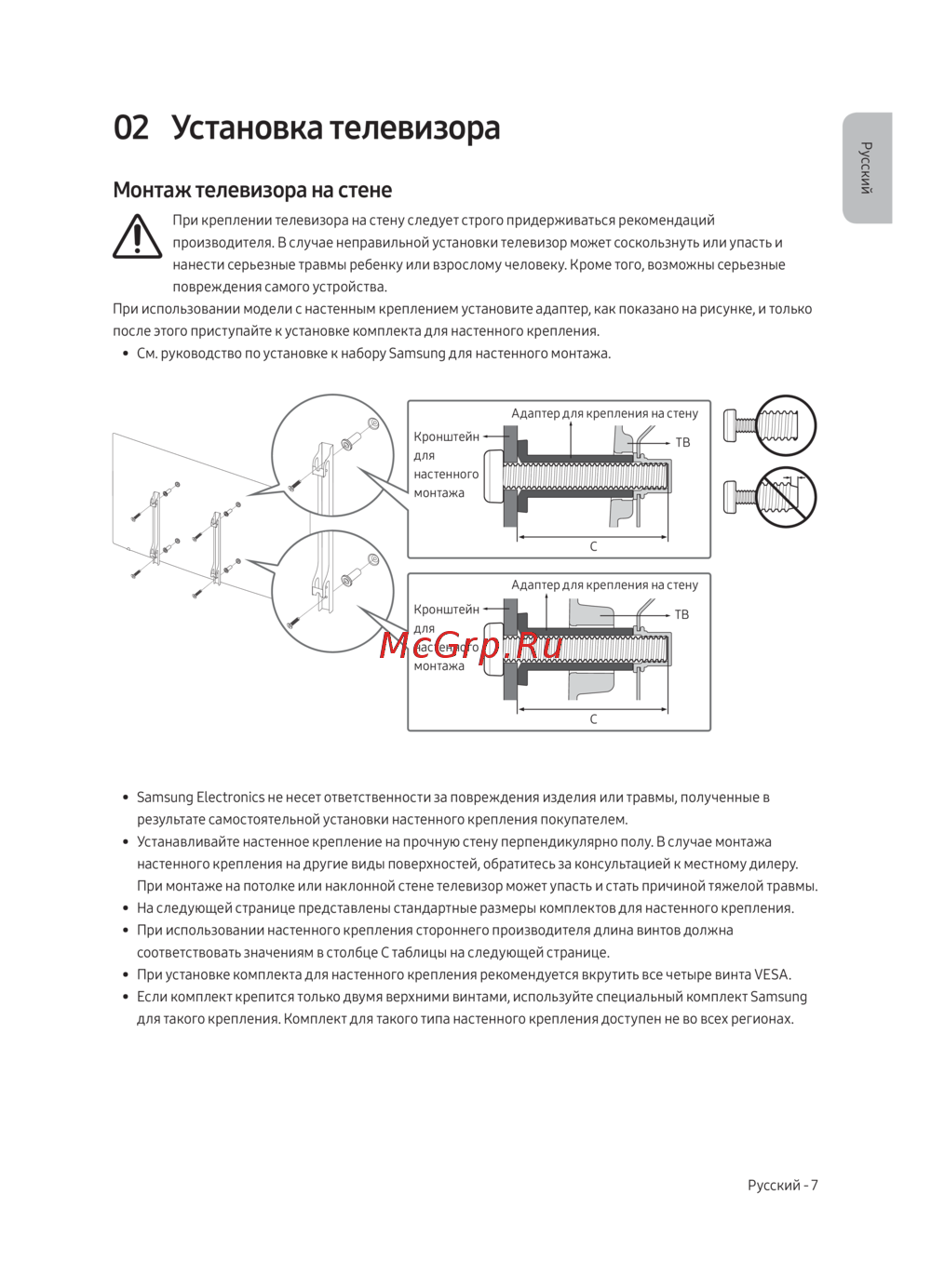 • См. руководство по установке к набору Samsung для настенного монтажа.