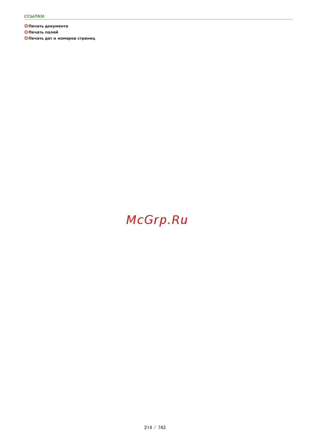 ссылки О Печать документа ОПечать полей ОПечать дат и номеров страниц 214 743