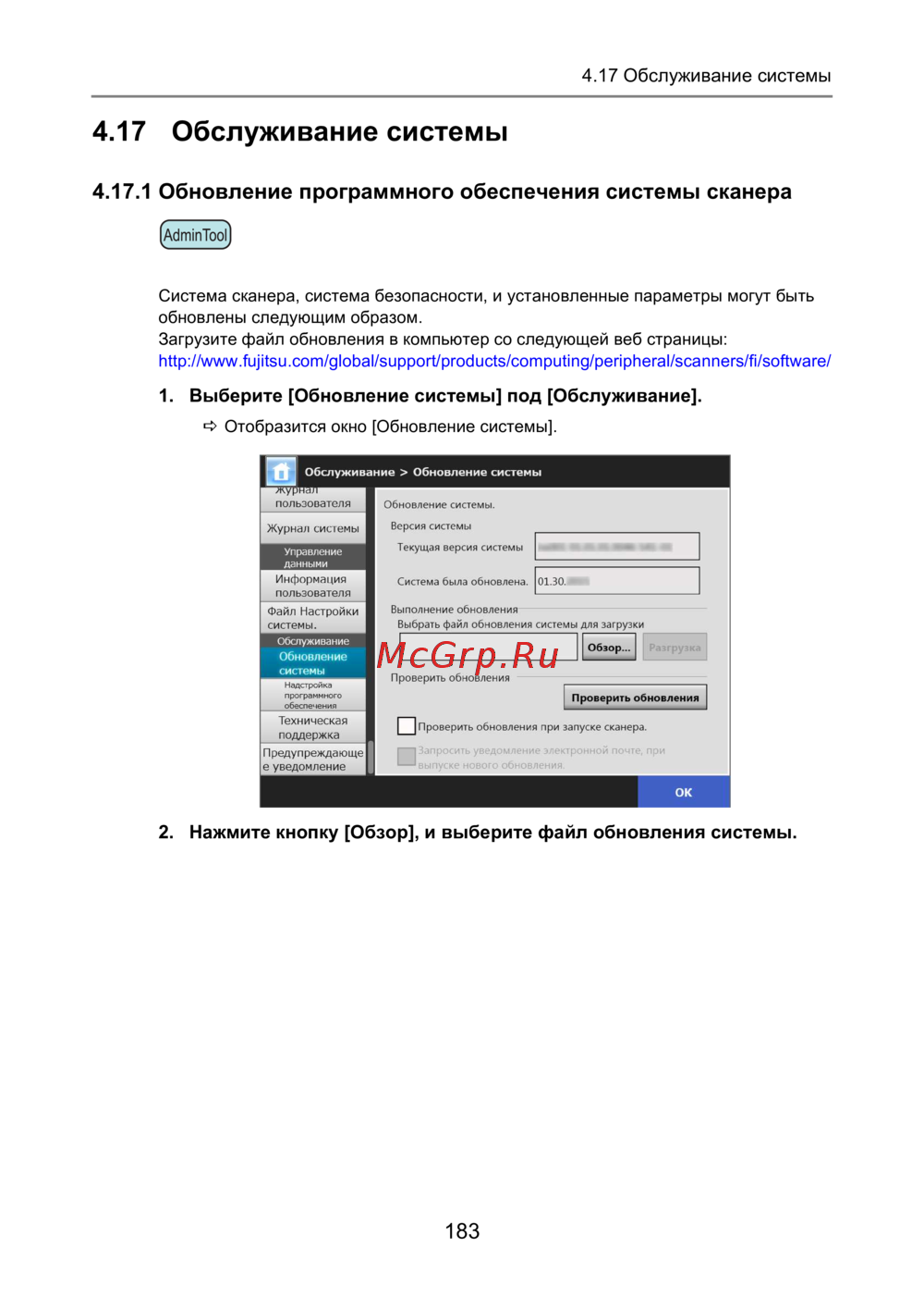 4.17.1 Обновление программного обеспечения системы сканера