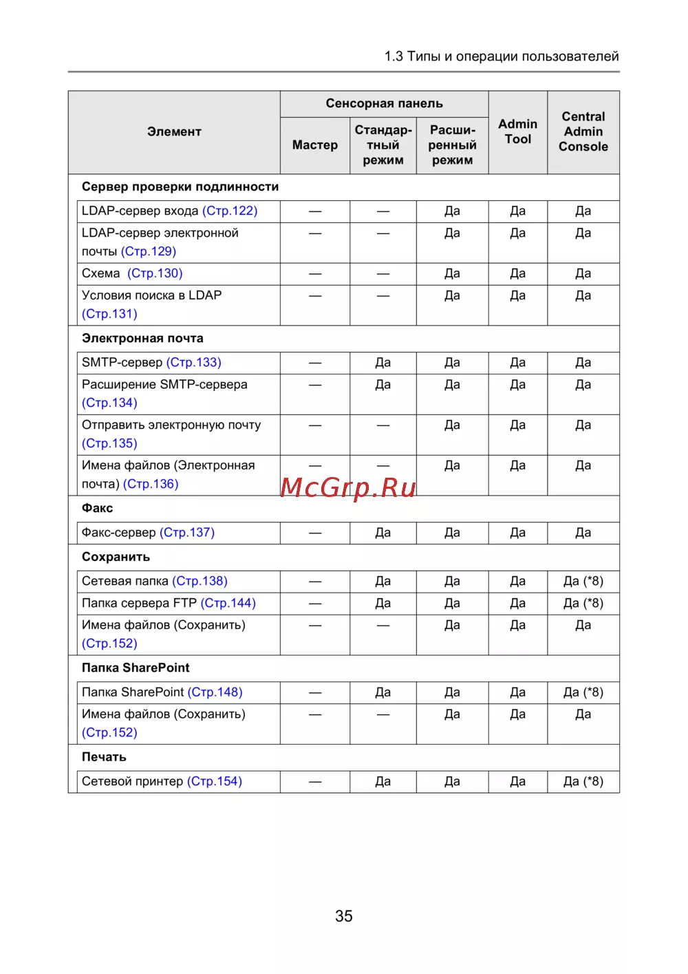 Факс-сервер (Стр.137) — Да Да Да Да