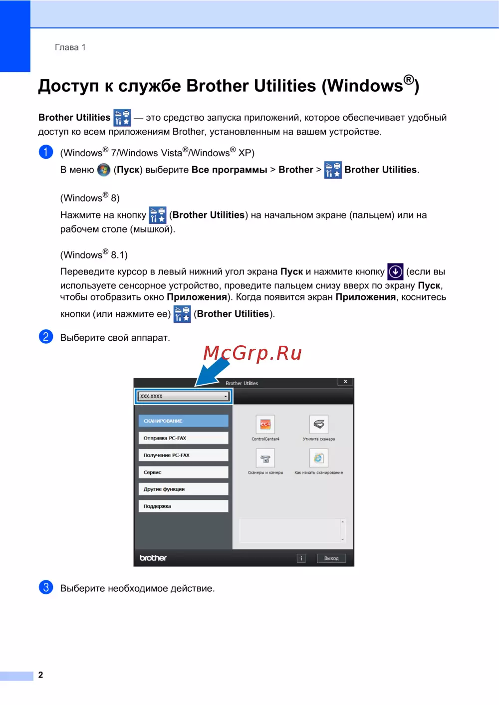 Brother Utilities — это средство запуска приложений, которое обеспечивает удобный