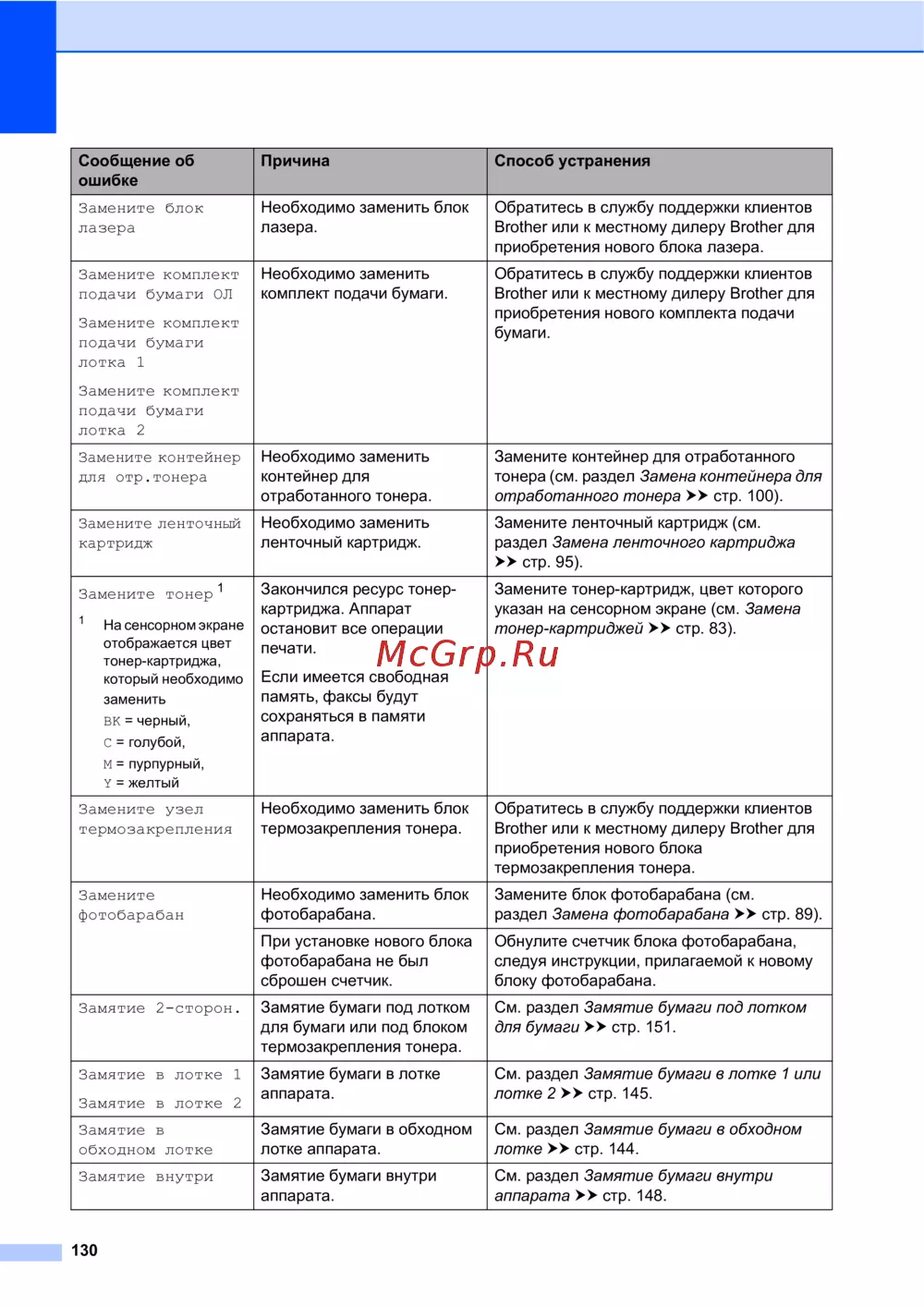 раздел Замена фотобарабана uu стр.89).