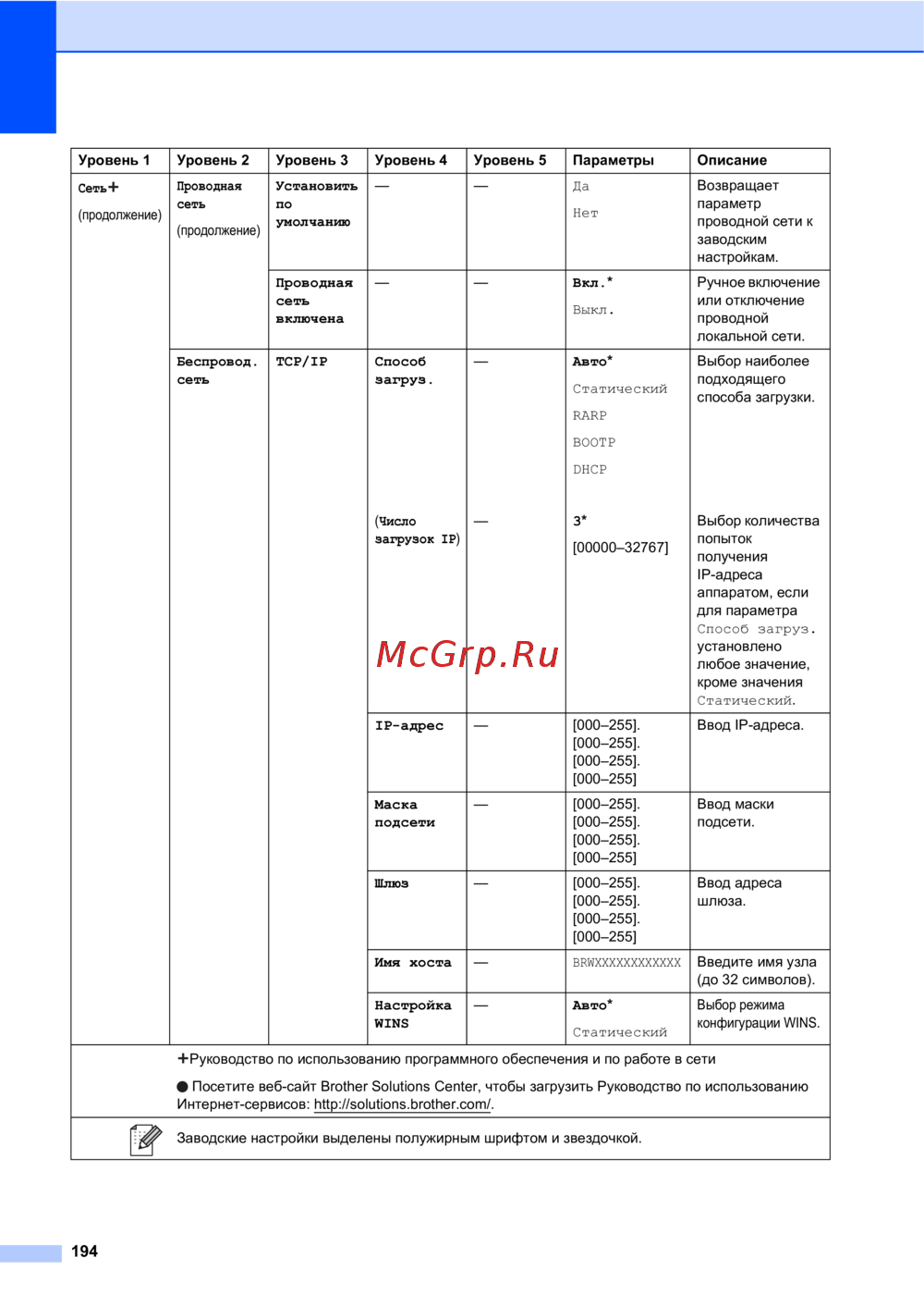 Brother MFC-L9550CDW — настройка проводной и беспроводной сети: руководство пользователя [204/269]