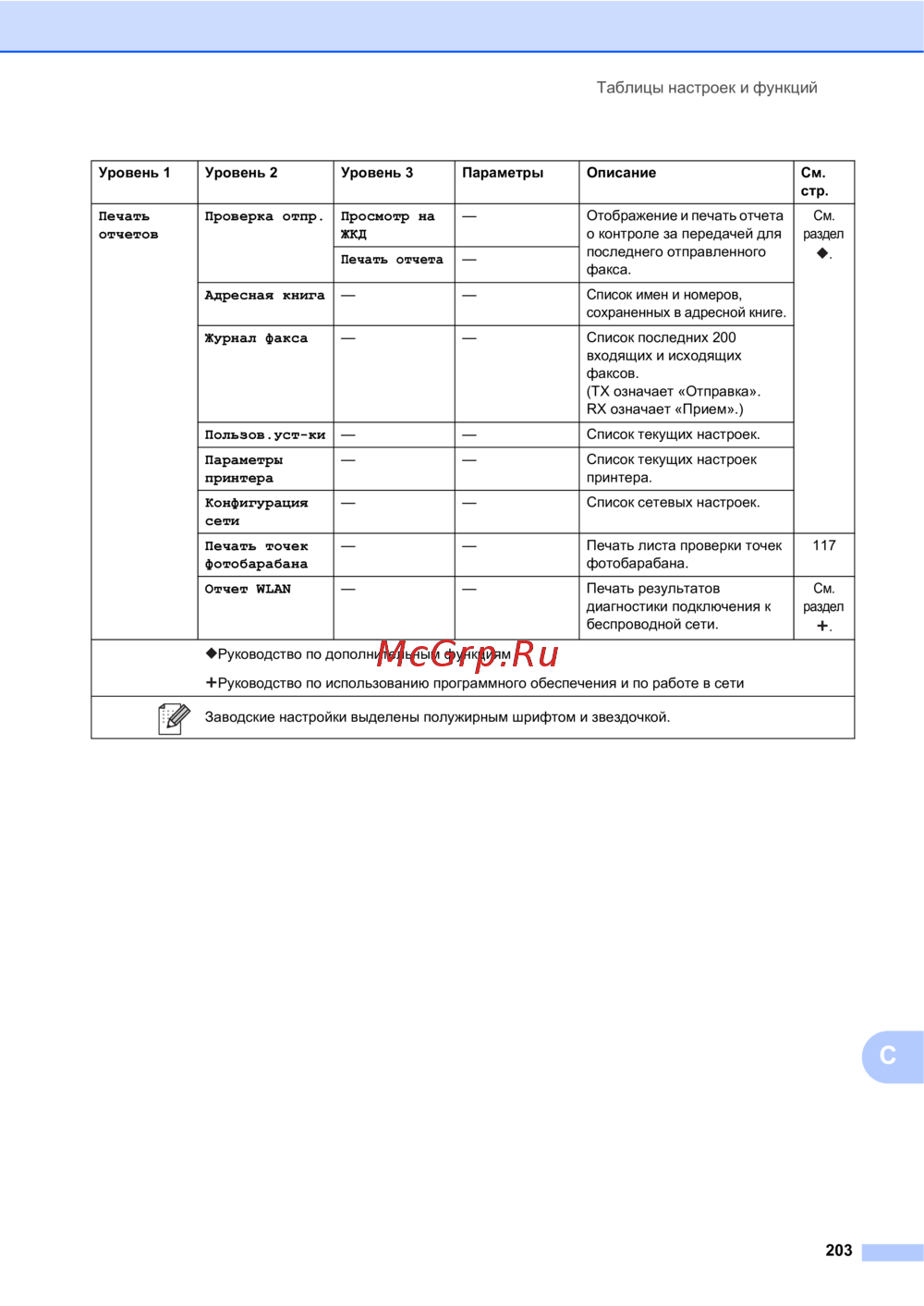 Brother MFC-L9550CDW [213/269] Таблицы настроек и функций
