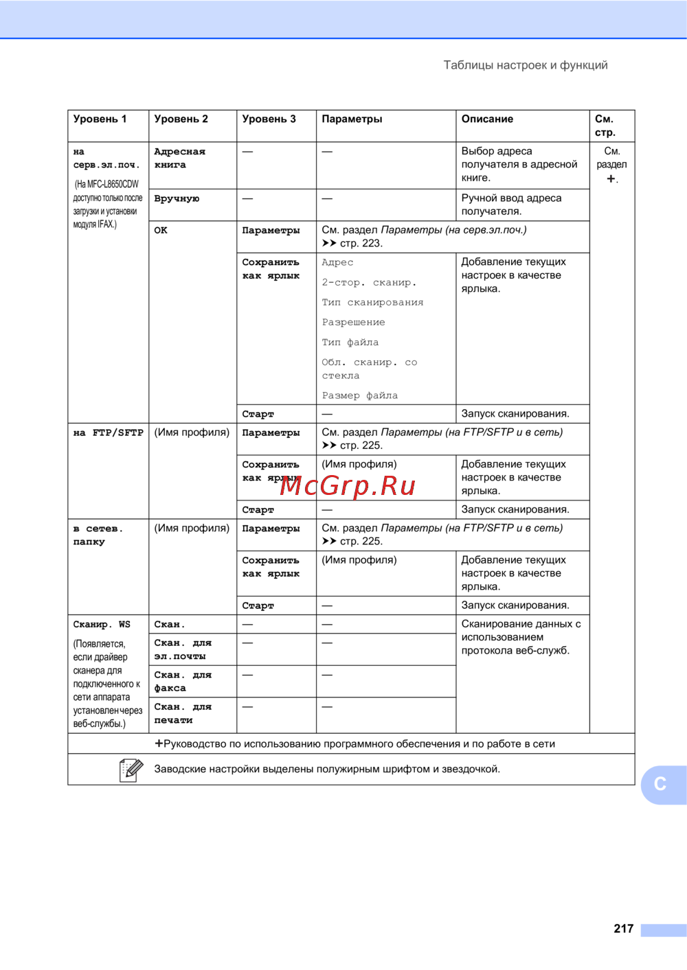 Brother MFC-L9550CDW [227/269] Таблицы настроек и функций