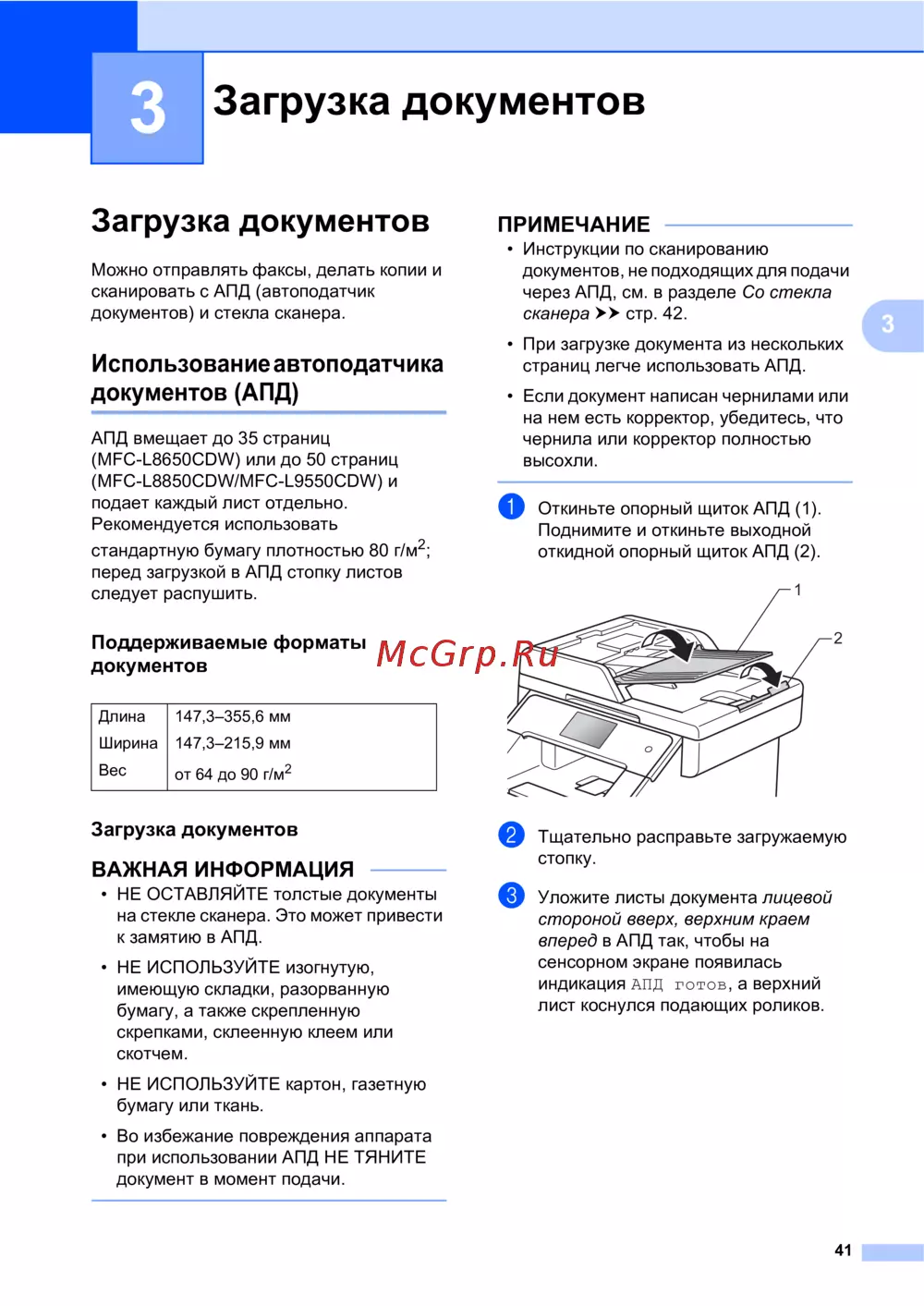 Brother MFC-L9550CDW — как правильно загружать документы в автоподатчик [51/269]