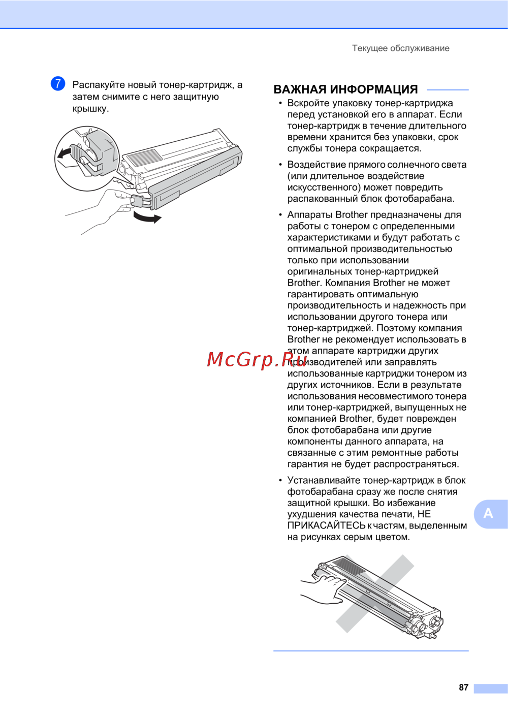 Brother MFC-L9550CDW — правильная установка тонер-картриджа для оптимальной работы [97/269]