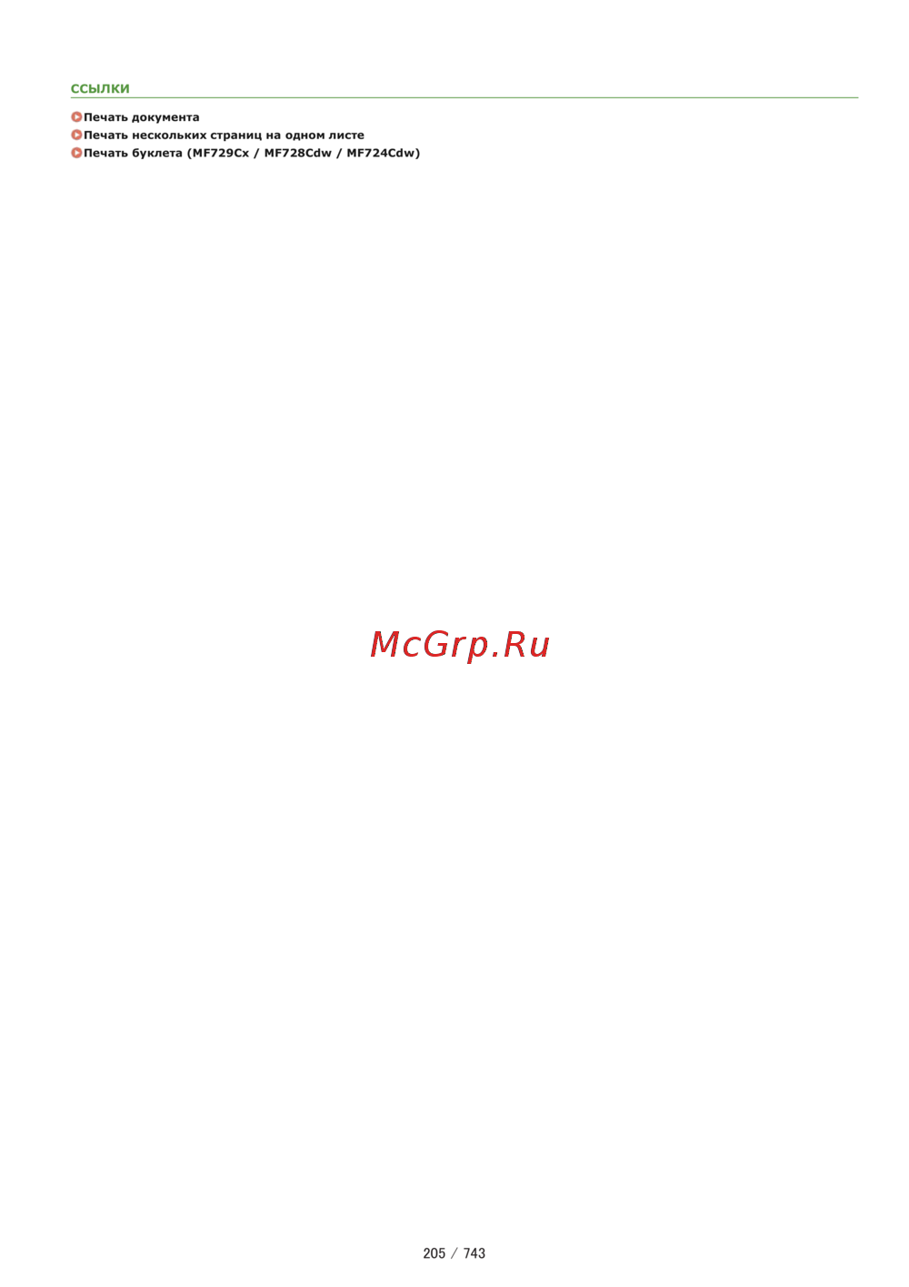 ссылки О Печать документа ОПечать нескольких страниц на одном листе ОПечать буклета МР729СХ МР728Сди MF724Cdw 205 743