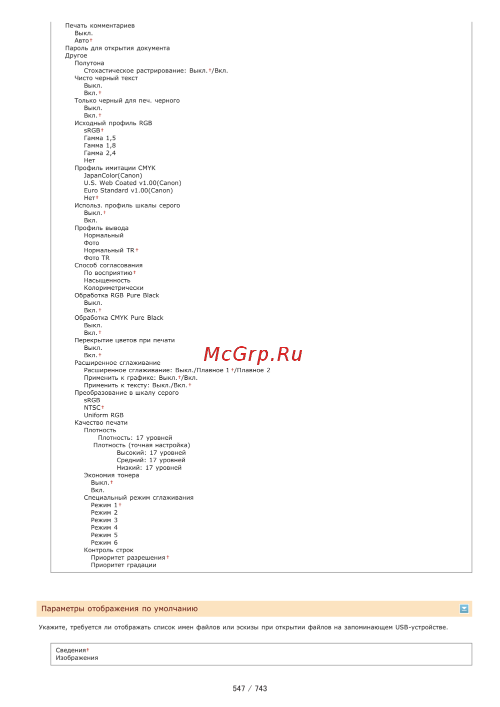 ![Canon i-SENSYS MF729Cx Лазерный \ светодиодный, Белый, Цветная, А4 [547/790] Параметры отображения по умолчанию](/views2/1346628/page547/bg223.png)