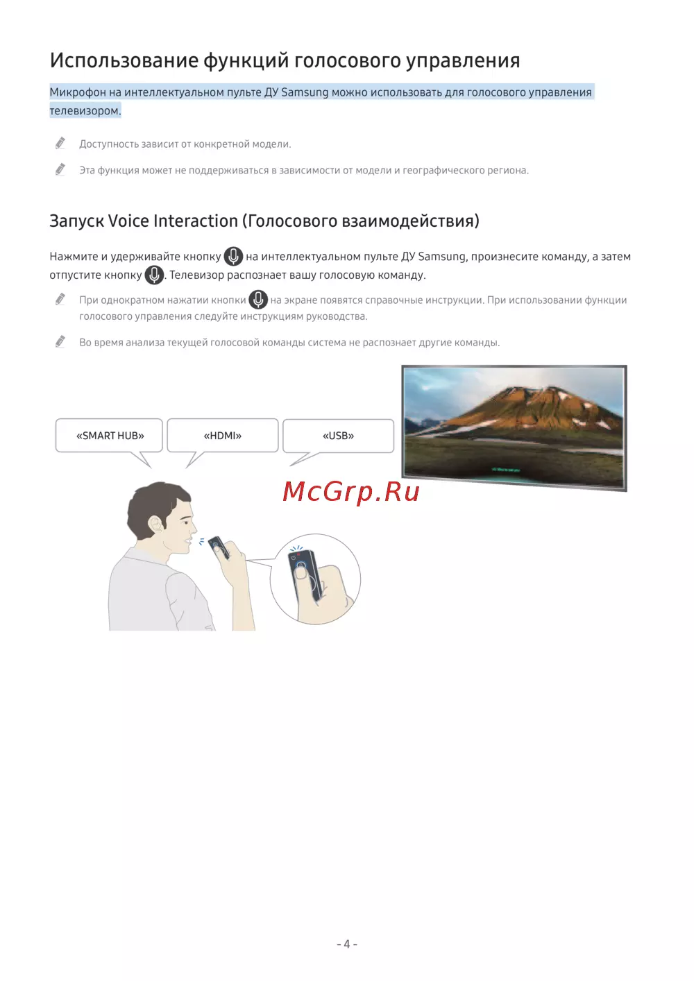 Samsung UE49MU6103UXRU черный [10/158] Использование функций голосового управления