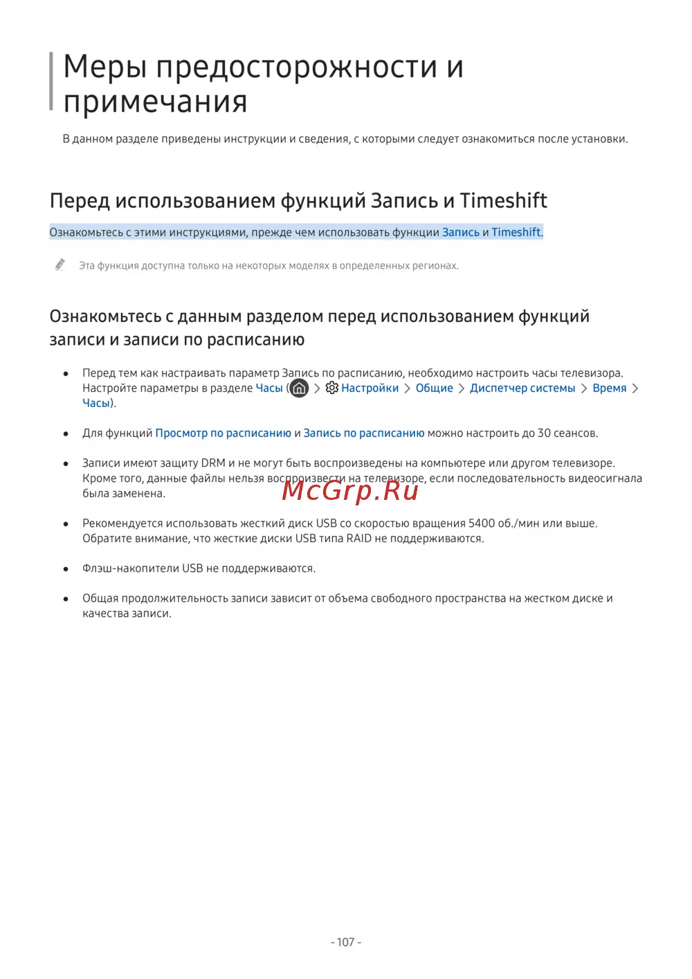 Samsung UE49MU6103UXRU черный [113/158] Ознакомьтесь с данным разделом перед использованием функций записи и записи по расписанию
