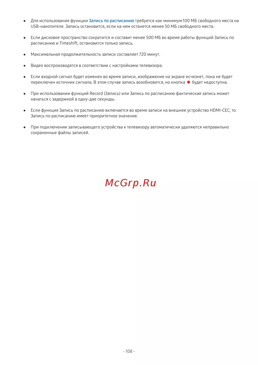 ● Для использования функции Запись по расписанию требуется как минимум 100МБ свободного места на